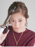前髪をヘアアイロンで仕上げます。このときは32ミリのアイロンでリバース巻をお勧めしますが、ご自分の前髪の量でもアレンジしてみてください。