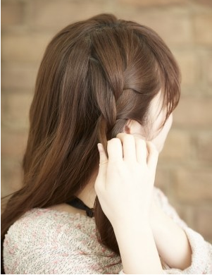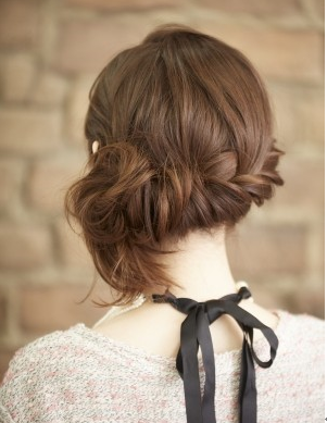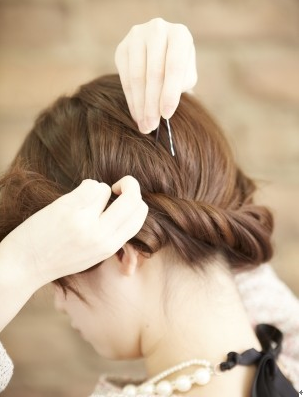 前髪を三つ編み、もしくはねじってピンなどで留める。