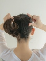 ③ 逆毛を立てた毛束を後ろにねじり、右側と同じぐらいの位置でピン留めすれば完成!