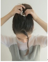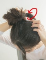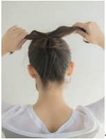 毛束が上に上がり、結び目が覆われてボリュームがでます。