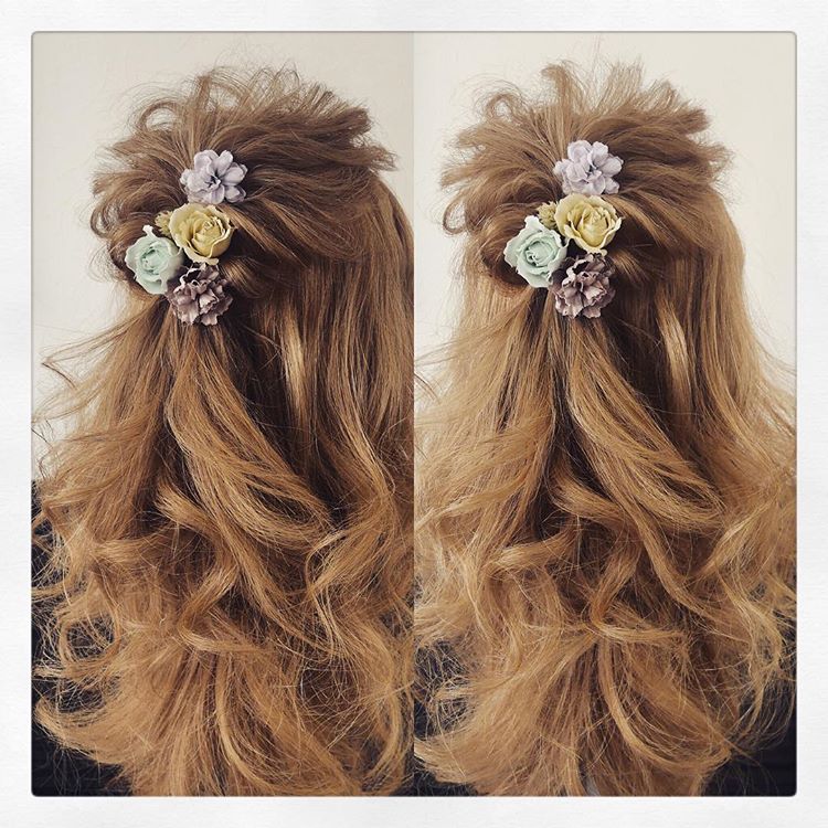 髪を留めるだけじゃなく、こんな感じでヘア飾りとして使うのも可愛いですよね